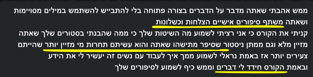 הנה, תראה מה חבר׳ה כמוך שהחליטו ללמוד ממני כתבו לי: